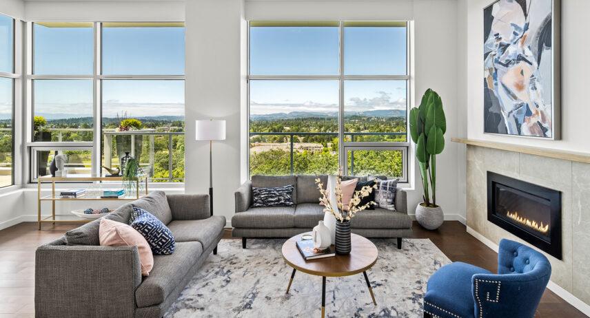 Bordering the Saanich Peninsula-Victoria divide, Lyra Residences are centrally located, with access to the city’s most-loved neighbourhoods and amenities. Nestled atop Christmas Hill in Swan Lake Christmas Hill Nature Sanctuary, Lyra Residences are just as connected to nature, backing onto a lush landscape of Garry Oak trees, wildflower meadows and wetlands. With two towers each featuring eight and nine storeys of spacious two-bedroom homes, Lyra Residences feature large terraces with unparalleled panoramic views of Victoria’s cityscape.